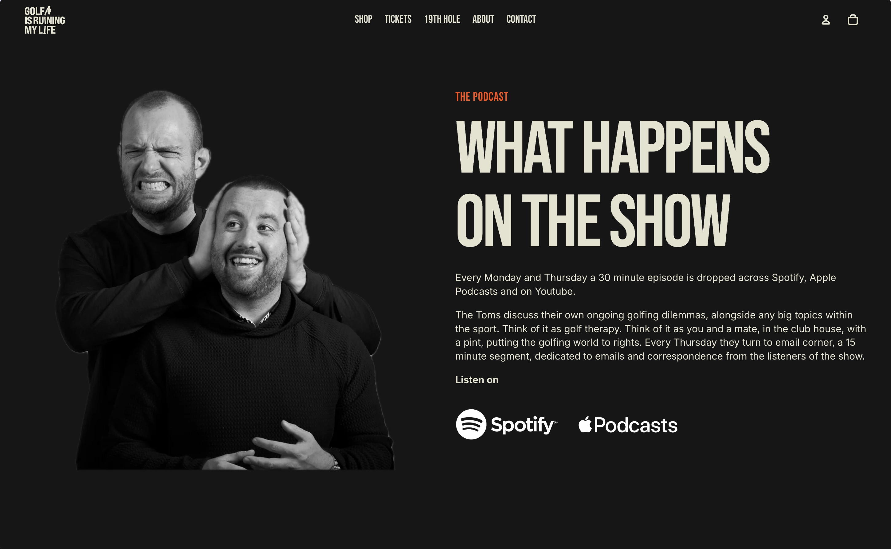 We designed and built a fast, bold Shopify site that gives GIRML a proper digital home. It sells merch effortlessly, pushes tour dates clearly and gives listeners a central place to follow the podcast as it grows.